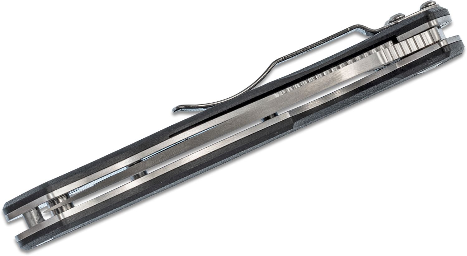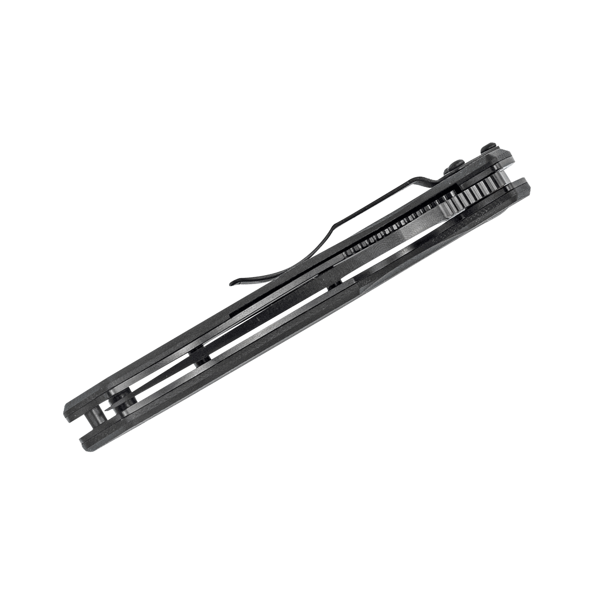 Tucked inside are skeletonized steel liners increasing the handle’s rigidity and strength without adding non-functioning weight or bulky thickness. The 8Cr13Mov stainless blade is leaf-shaped and ground flat from spine to cutting edge for cutting performance.