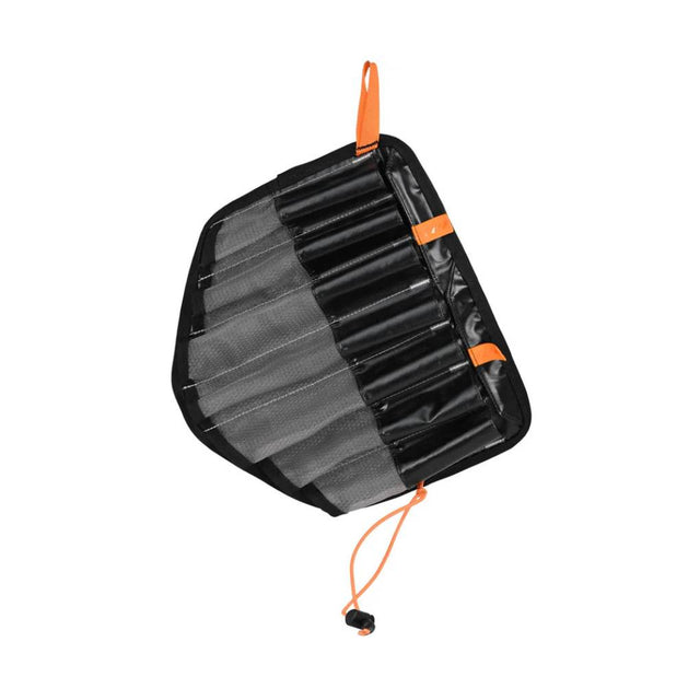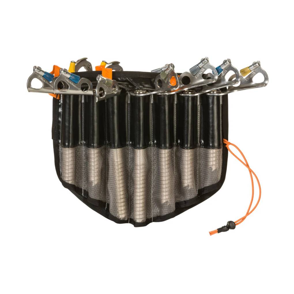 A dedicated zippered pocket and hideaway inner compartment keeps everything in one place while lightweight 3mm EVA foam provides enough cushion to prevent hardware from rubbing through. Burly and breathable mono mesh sleeves provide lightweight protection when transporting your screws inside your pack but also allows them to thoroughly dry out when the day is over without having to unpack each screw individually. Retention flaps above the screw sleeve keep them from falling out when the pouch is inverted or tossed into your pack. If you decide to run a lighter kit, you can wrap your crampons in for a light and versatile setup.