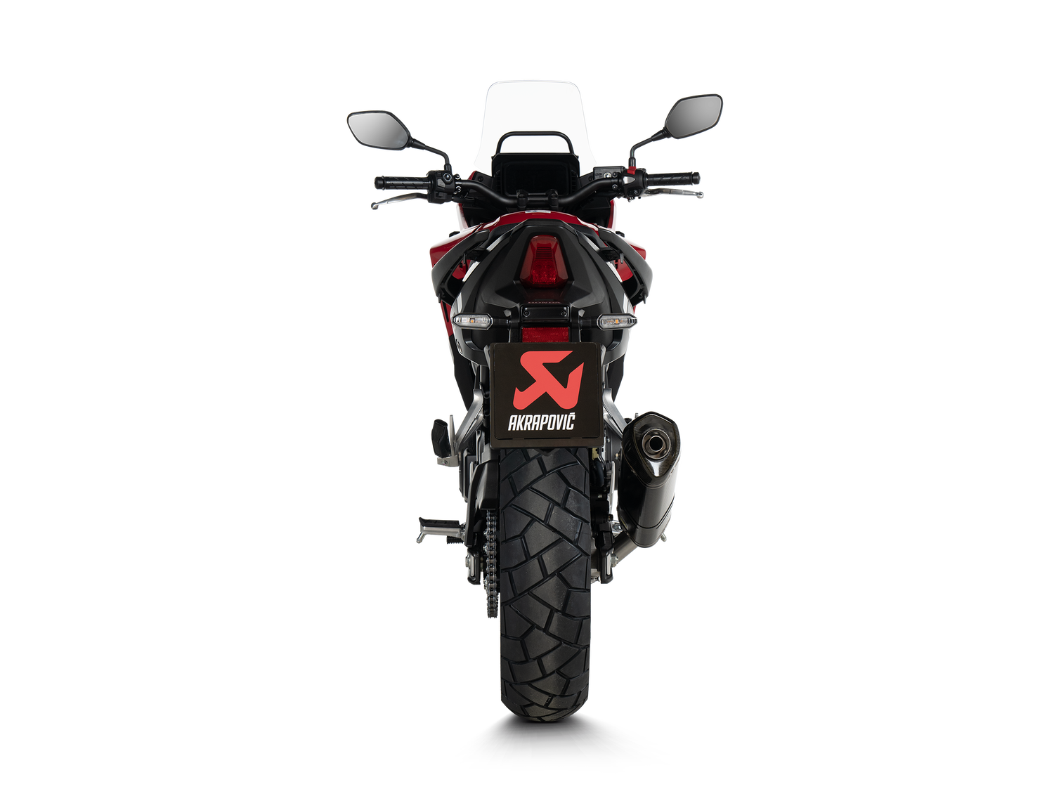This stylishly designed exhaust has been exclusively modelled to integrate perfectly with the lines of the bike. Comprised of a carbon-fibre muffler outer sleeve and end cap, with a high-grade stainless-steel link pipe and inner muffler structure, the system saves 48.8% (2 kg) in weight when compared with the standard stock exhaust system. With a vivid and deep soundtrack that embodies the feeling of the twin engine, the performance and torque are also increased by 0.6 kW (0.8 hp) at 7,450 rpm and 0.8 Nm at 4,600 rpm, respectively, when tested on the Akrapovič dyno and compared to a Honda NX500 equipped with a standard stock system.