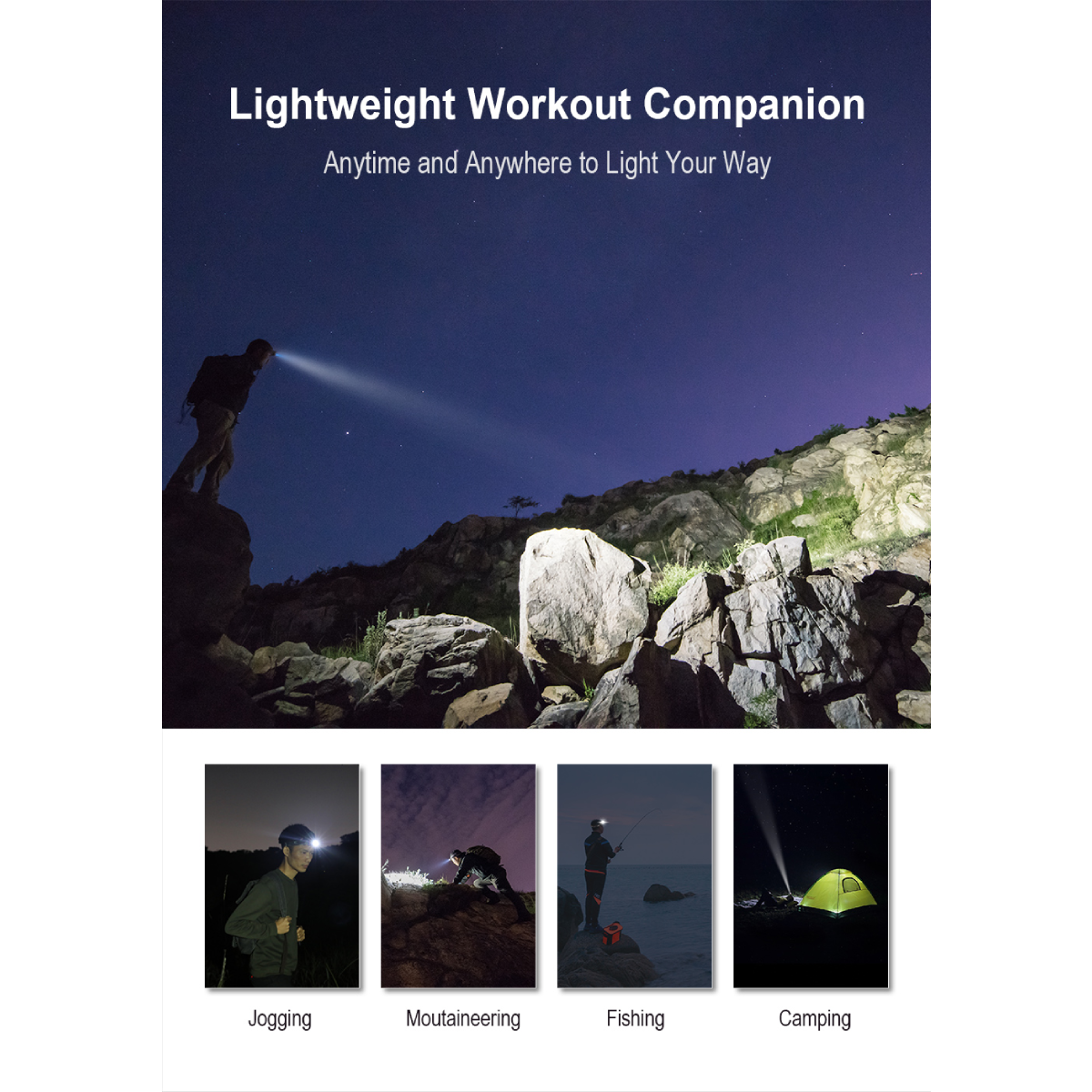 Lightweight and Comfortable: 2.47 ounces of weight , you can run or work long time during night or camp outdoors, performing automotive repairs and household tasks without feeling it on your head. - 5 Lighting Modes/Motion Sensor Mode: Press the on/off button to switch between 5 lighting modes, press the sensor button to turn on/off the sensor function. Waving your hand to control its turn on/off in motion sensor mode during every lighting modes.