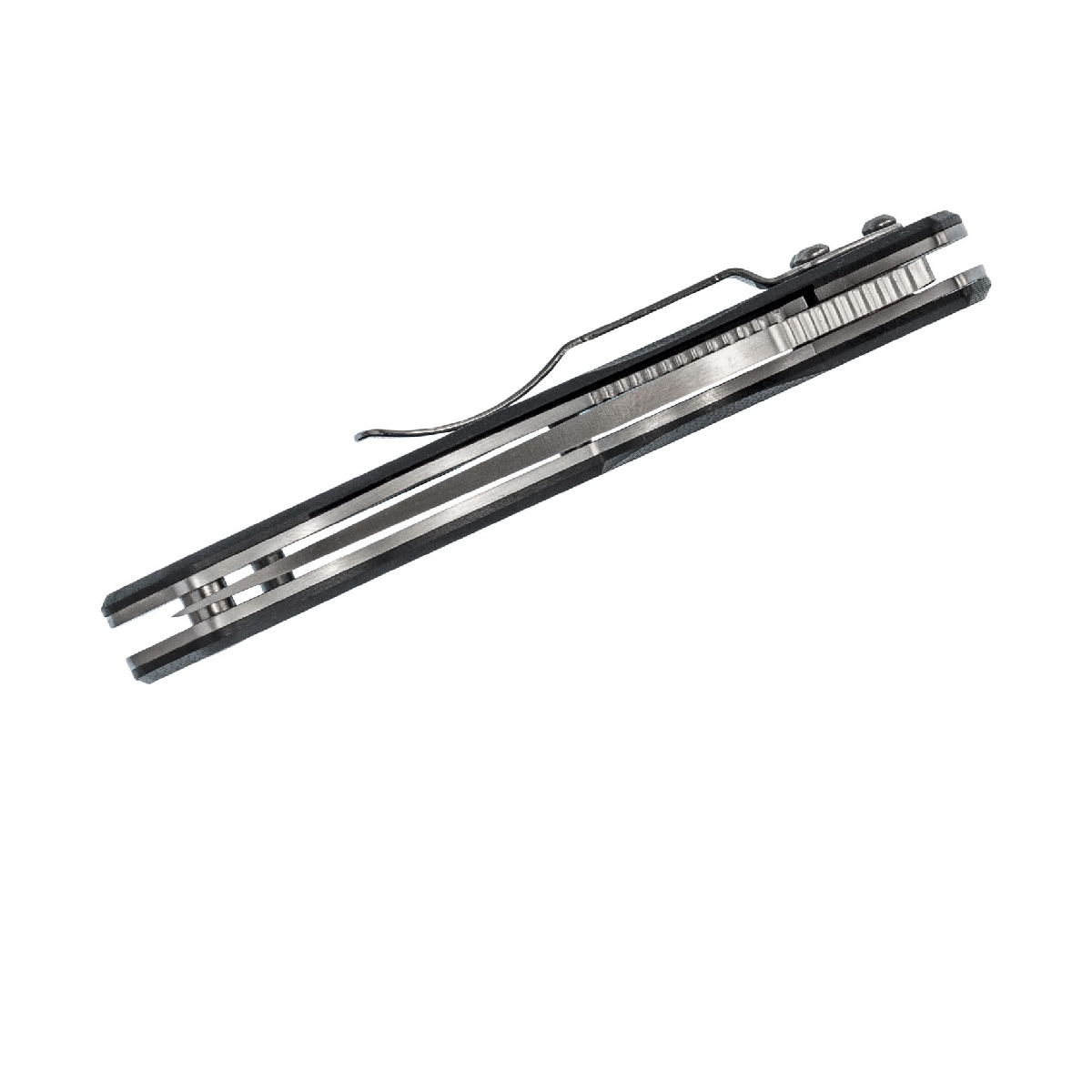 Fully sharpened edge from tip to tang generates the most cutting edge possible for the blade's length. A 4-way pocket clip lets the folder set tip-up/tip-down left-hand/right-hand. Walker Linerlock has a jimped liner. Screw together construction.
