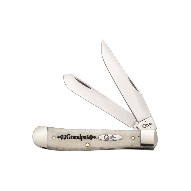 This Trapper model has a "Grandpa" branded white bone handle.The Case Trapper is one of the most iconic designs ever made.