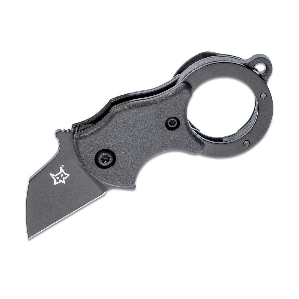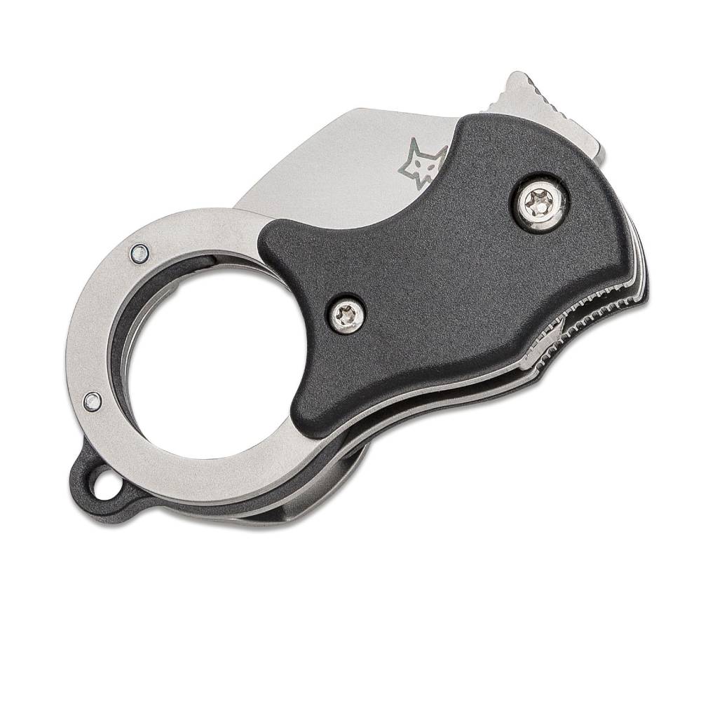 The Fox Mini-TA folding karambit is unbelievably useful as a small package opener or as an ultra-compact everyday knife. Carried with the clip in the pocket or on the keyring, this minimalist karambit is always ready for use. It features fiberglass-reinforced nylon (FRN) handle scales and a 1.4116 stainless steel Wharncliffe blade. Includes an orange/black embroidered Mini-TA with Fox logo flight tag keychain.