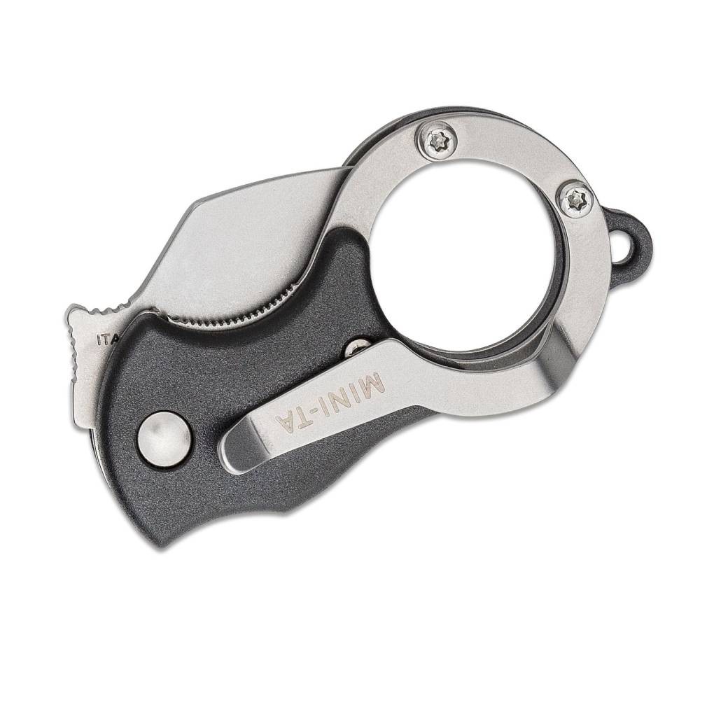 The Mini-TA is a super-compact karambit style knife that makes for an awesome lightweight everyday carry knife. It has a nylon handle with a matching nylon back spacer. A pocket clip or a keyring loop for multiple carry options round out this miniature karambit. Item also includes a pocket clip for more traditional carry.
