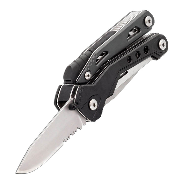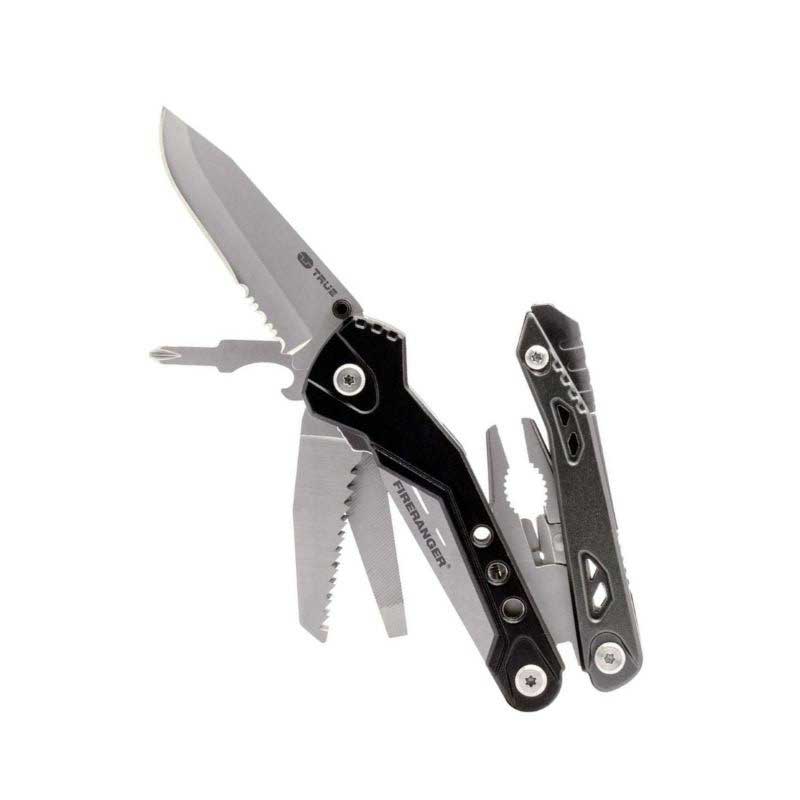 The FIRERANGER is a knife first, emergency survival multi tool. Full size needle nose Pliers with inset Carbide Cutters/Wire Strippers, internally sprung for ease of use and Fire ranger boasts a toughened triple point 50mm shark tooth Rip Saw and a drop forged diamond cut double sided File.