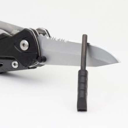 - FERROCERIUM STRIKER & WHSTLE:A pull-out Ferrocerium fire Striker Rod, combined with an emergency Whistle.