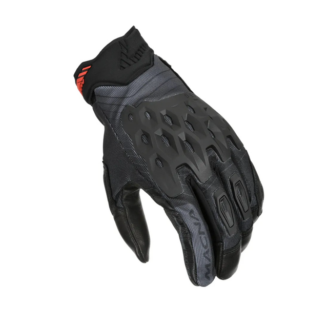 A short-cuffed leather glove with EXO RISC™ protection at the knuckles, suited for riders in hot riding conditions.