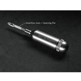 The insertion tool / cleaning file is attached at the top, and the cartridge body then becomes a handle, with the rounded end providing a comfortable grip. Because the Repair Kit looks exactly like a CO2 cartridge, including the threads, it can be carried anywhere you would usually carry a CO2 cartridge.
