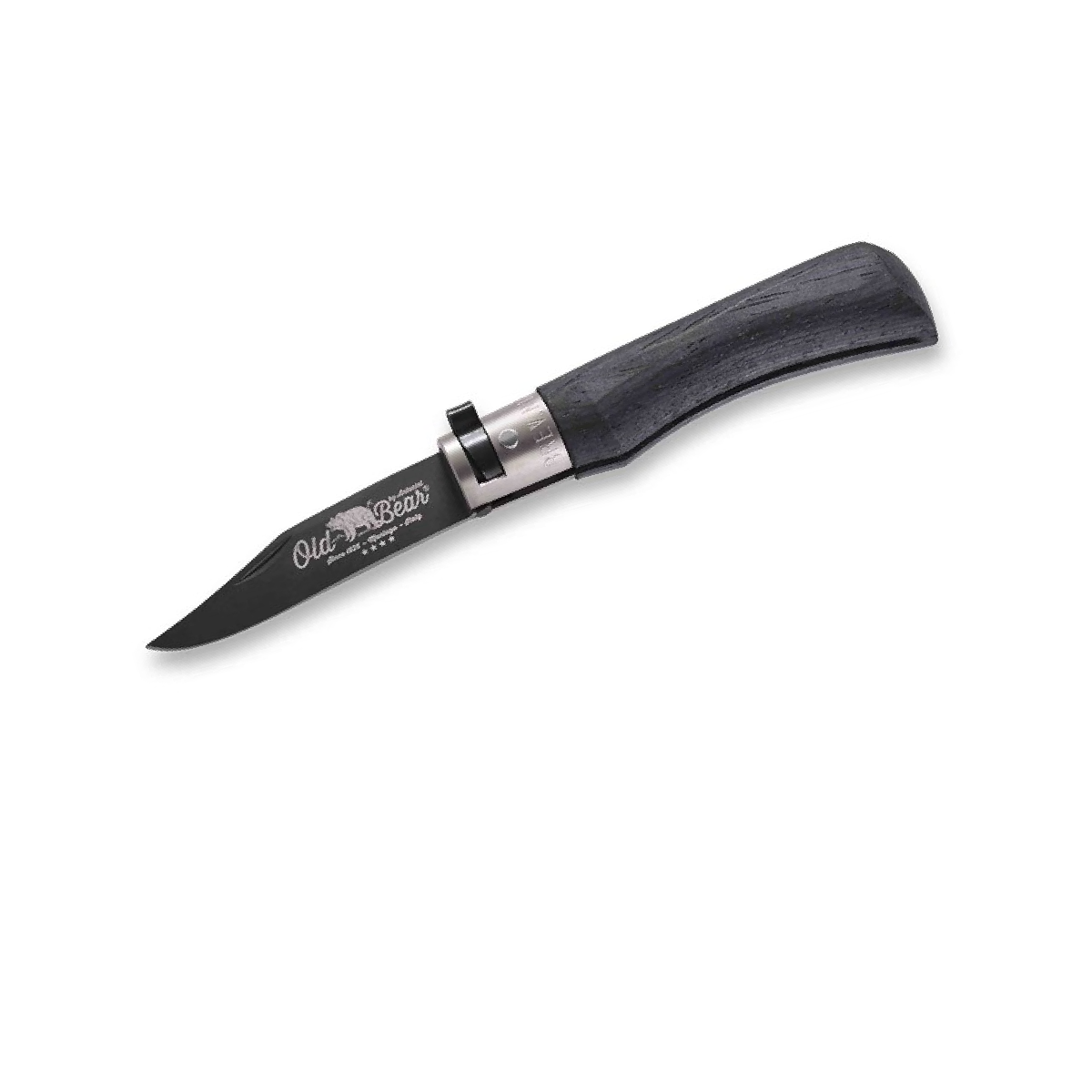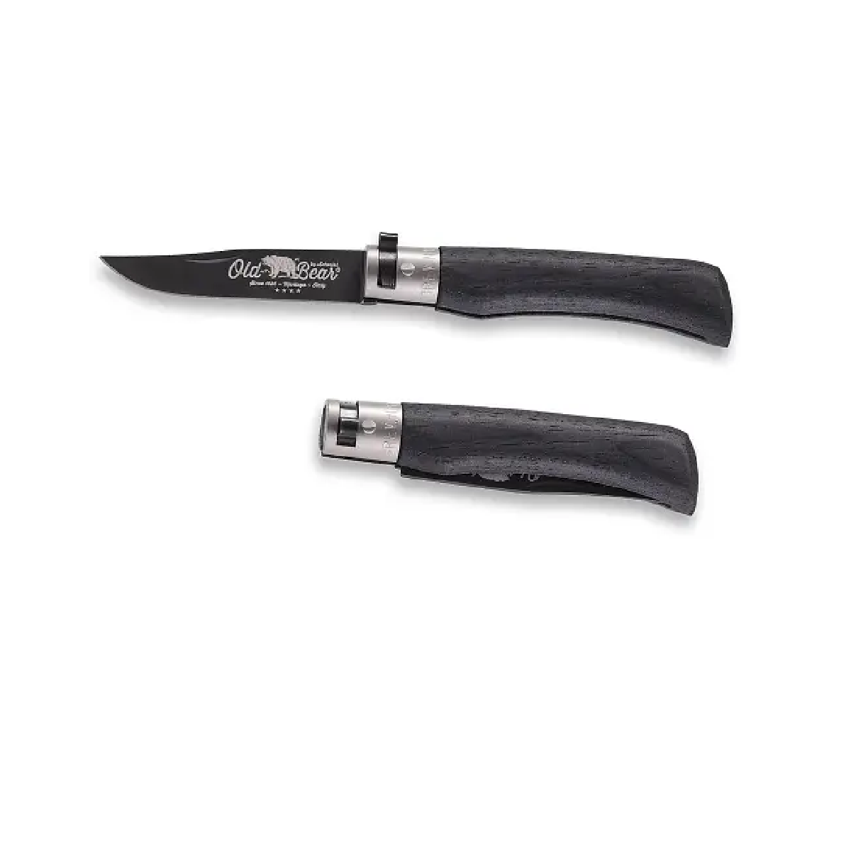 The "Old Bear" knife comes without a no-return spring meaning its blade locking system features a solid safety ring (covered by patent n.1187282 deposited in the year 1985 by Todesco company from Maniago which is an active partner of this project) that fixes the handle in the open and closed position.