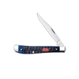 This Slimline Trapper is a part of the Navy Blue Bone Family. Join us in celebrating American patriotism with this Case collection, carrying a deep sea-colored handle with bright red shield.
