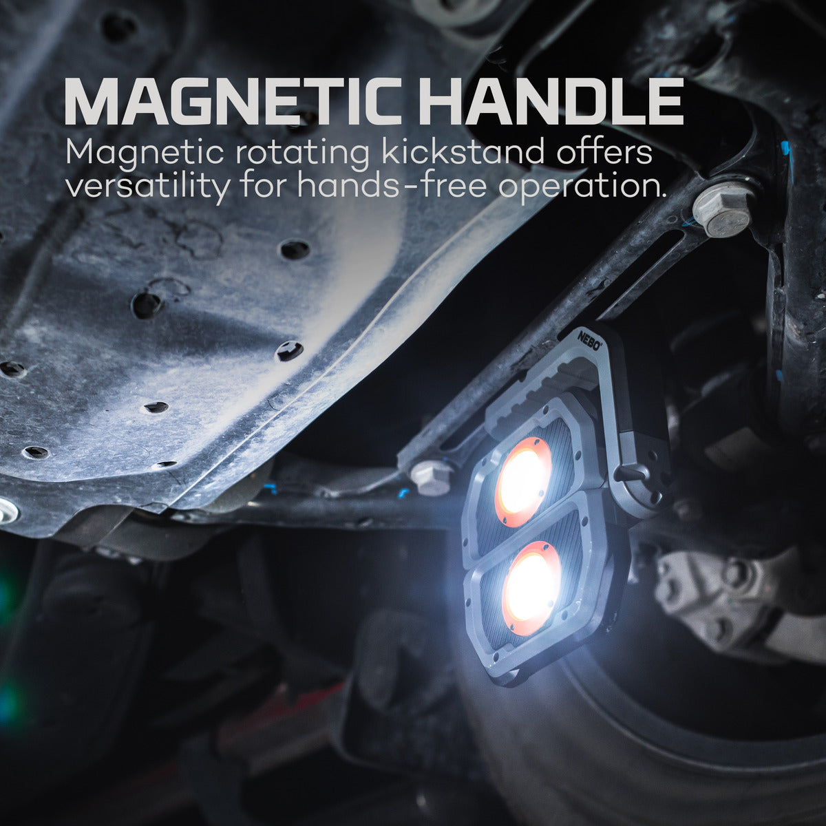 The OMNI 3K features a magnetic handle and kickstand with dual C•O•B panels that rotate 360 degrees and provide convenient, hands-free, omni-directional light exactly where you need it. The six light mode versatility empowers you to customize the light output and beam distance while conserving power. Technology innovations like Smart Power Control™ create a seamless transition through light modes to extend battery life. Don’t trust your work to a work light that can’t keep up.