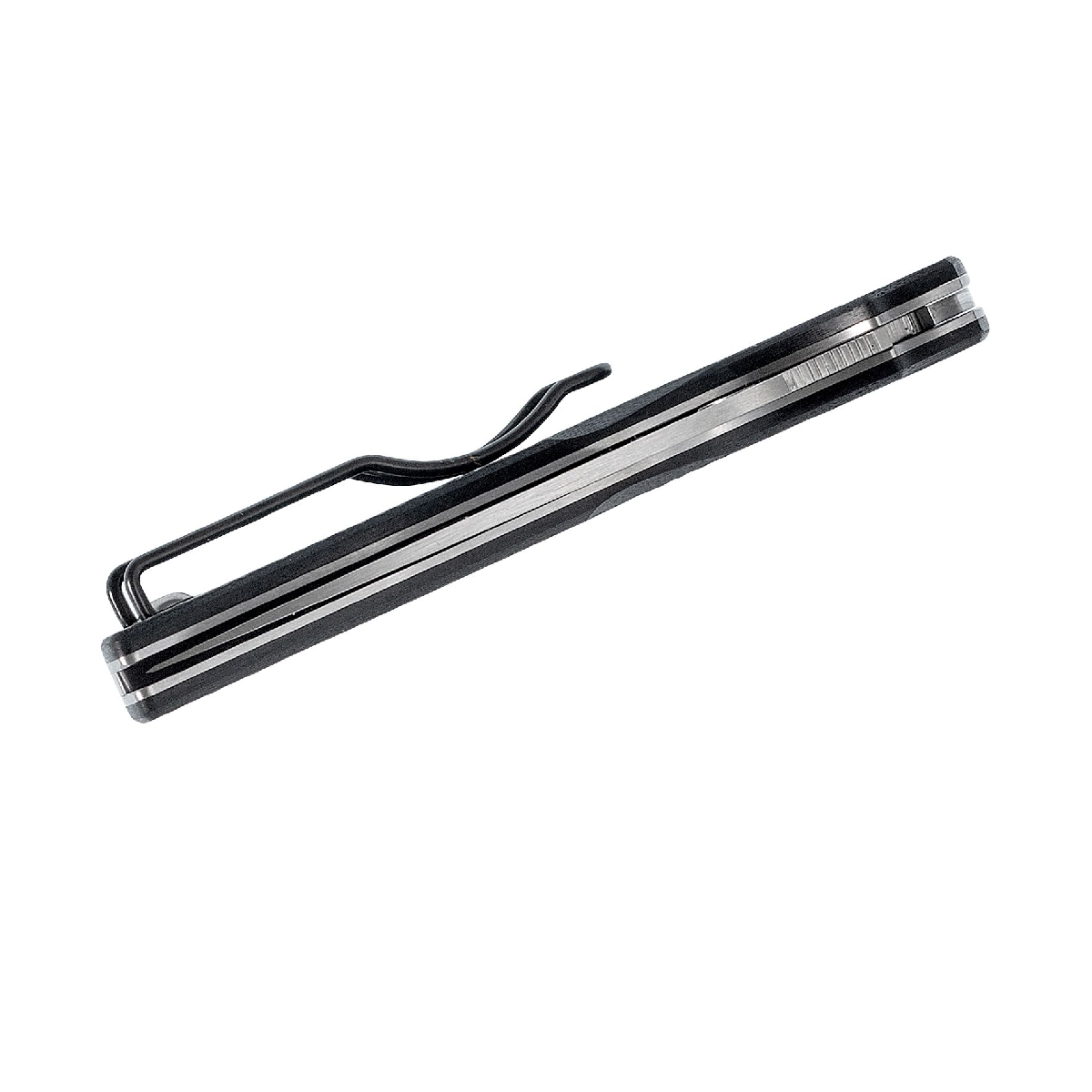 Attached to the ultra-slim handle, a left-right, tip-up clip arranges the knife deeply inside a pocket. Carpenter Technology Co. produces the CTS XHP powdered steel used for the leaf-shaped blade. The blade is ground full-flat and offered PlainEdged for the best available cutting performance with non-skid jimping located at both the spine and choil.