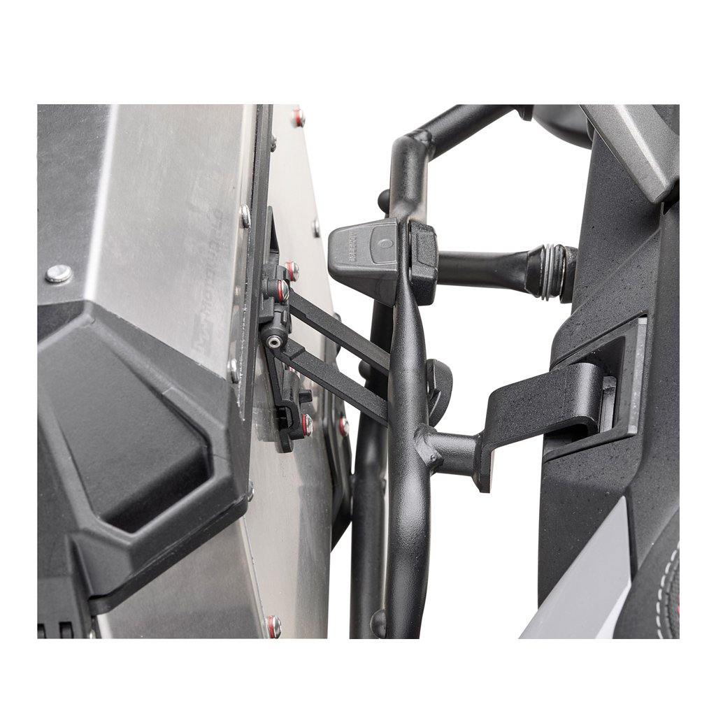 A dual-function locking mechanism operated with a single key is all that's needed to open the lid or detach the case from its rack. GIVI Trekker Alaska cases feature a hook mechanism that enables them to be held on their racks in a slight outward tilt for easier loading; this is especially helpful on bikes with large top cases. Webbing loops are incorporated into the lids for lashing down additional gear. Virtually every piece of the Alaska case is replaceable, from the rack attachment points, to the lock assembly to the hinge and handle to ensure this case is with you for many years to come.