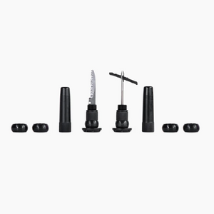 Each lightweight and durable set contains everything you need to get back riding when you’re stuck battling a hole that’s just not sealing: a stainless steel 2-in-1 puncture plug reamer tool, a variety of different-sized tyre worms and a trimming knife.