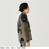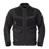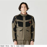 Adventure style air-through jacket with 3D mesh on chest and back and mesh on arms inside.