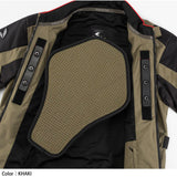CE lv.2 soft protectors on shoulder and elbow as standard equipment. Foam padding on the back. It can be upgraded to the optional protector.